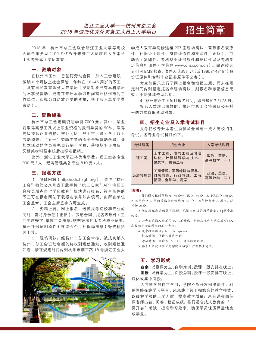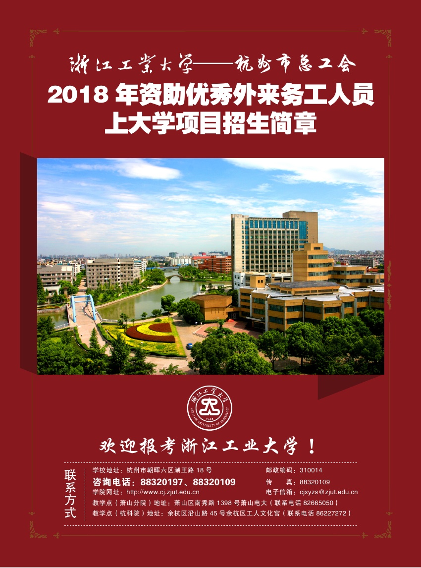 杭州市总工会2018年资助优秀外来务工人员上大学项目专升本招生简介