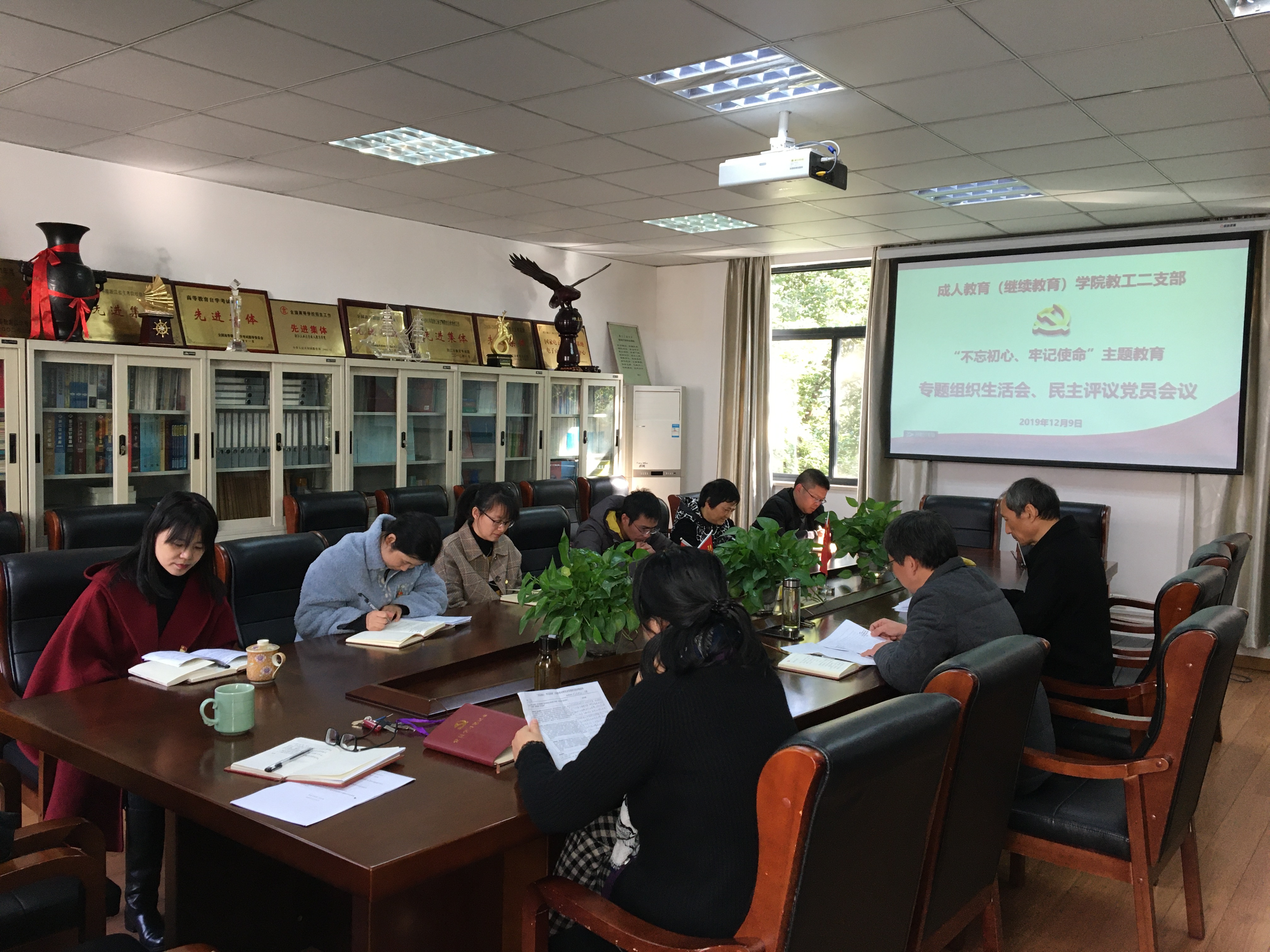 按照学校的要求和部署,近日,成教学院各教工党支部相继召开“不忘初心,牢记使命”主题教育专题组织生活会和民主评议党员活动。