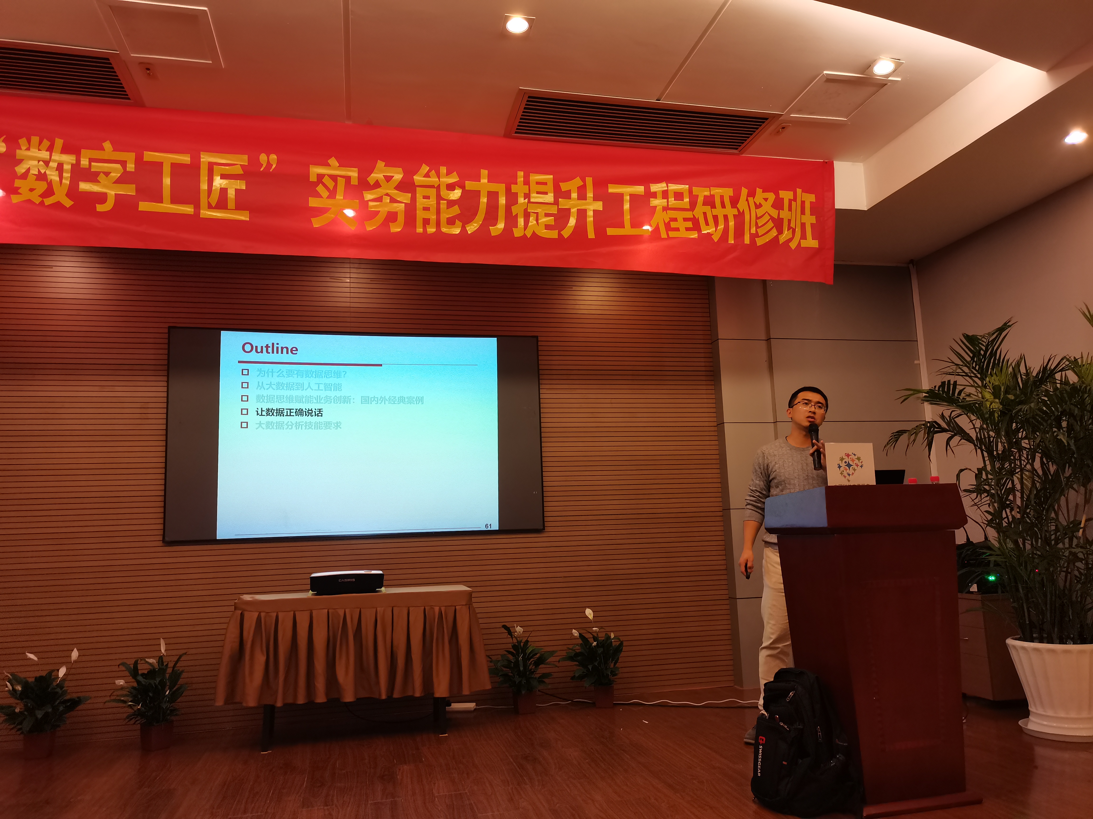 副教授曹斌带去主题为《从大数据到人工智能:数据思维赋能业务创新》,以考古学家对待历史数据的案例引出大数据思维,以及大数据如何结合工作开展创新,提高工作效率,提升工作成果。